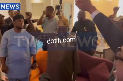 President Bola Ahmed Tinubu who is currently in India for the G20 summit, celebrated his victory at the Presidential Election Petition Court with his close associates who accompanied him. A video shared online showed the President monitoring the proceedings of the court via a TV set. After his election was affirmed, he was congratulated by his son Seyi Tinubu and others present with him in India. Watch More Videos on video.i.ng Follow us on Instagram…Powered By ADNG.NG free ads A post shared by ringroad.com.ng (@ringroad.com.ngofficial) The post President Tinubu and his associates celebrate his victory at the Presidential Election Petition Court (video.i.ng) appeared first on ringroad.com.ng.