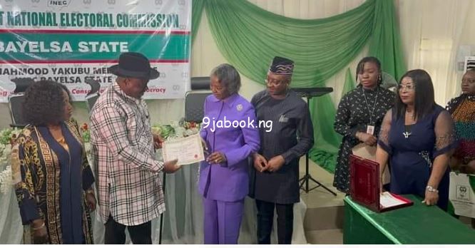 It was as if the hundreds of PDP supporters massed on the fringe of the security dragnet mounted around the state INEC office knew history was in the making as the area burst into in festivity with songs hurriedly composed in Izon, mocking Sylva, blaring from sound system mounted on a hilux van draped with the poster of Governor Diri and his deputy, Lawrence Ewhrudjakpo.