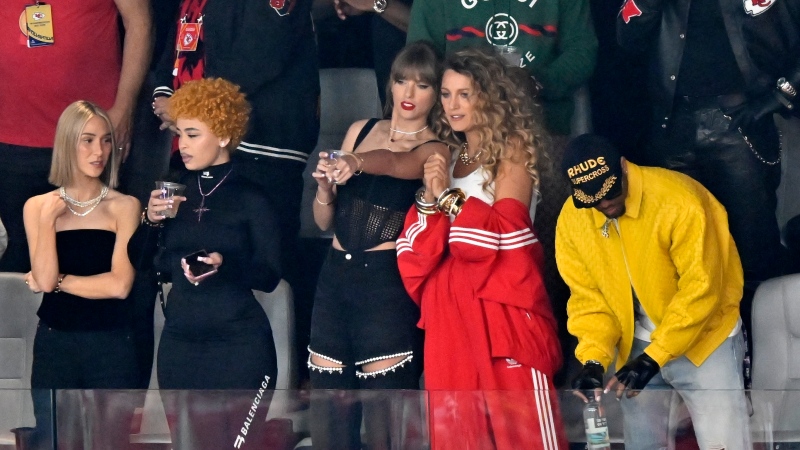 Swift was accompanied by Blake Lively (left), Ashley Avignone (2L) and Ice Spice (center)