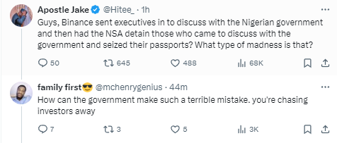 Nigerias Department of State Security detained at least two Binance employees on Monday night, Feb. 26, in Abuja in connection with investigations into the crypto exchanges operations in the country. Authorities have seized the passports of two Binance executives, an American and a British citizen. According to Financial Times, the executives flew to Nigeria following the countrys decision to ban several cryptocurrency trading websites last week but they were detained and their passports seized, Officials did not provide details on why the Binance employees are being detained, and it remains unclear on whether they have been charged with any violations of Nigerian law. The incident comes as the Nigerian Communications Commission ordered internet service providers to block access to Binance, Kraken, Coinbase and other crypto exchange websites. That action came after Binance and other crypto exchanges were accused of aiding and abetting currency speculation and forex market manipulation from several segments of Nigerias government. Nigerias central bank governor Olayemi Cardoso on Tuesday, Feb. 27, said there were indications of illicit flow of funds through platforms like Binance. In the case of Binance, in the last one year alone, $26 billion has passed through Binance Nigeria from sources and users who we cannot adequately identify, Cardoso said at a press conference. Meanwhile, Nigerians have taken to the social media platform X to say that this action by Nigerian authorities would chase investors away. The post Nigeria detains UK and US Binance executives in cryptocurrency clampdown appeared first on .