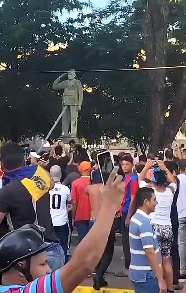 Some ripped down and burned Maduro campaign posters while at least two statues of Hugo Chavez — the late authoritarian socialist who led Venezuela for more than a decade and handpicked Maduro as his successor — were knocked down by protesters.
