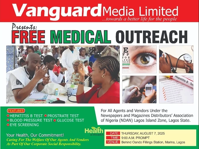Fatai was one of over 300 newspaper vendors, agents, and residents who benefitted from a free health outreach organised by Vanguard Media Limited in Lagos. The programme, which is the 3rd in its series offered eye screenings, blood pressure checks, HIV tests, Hepatitis screening and medication, drew participants from across five zones — including Ojota, Maryland, Iyana Ipaja, Ketu, and Egbeda all in Lagos.