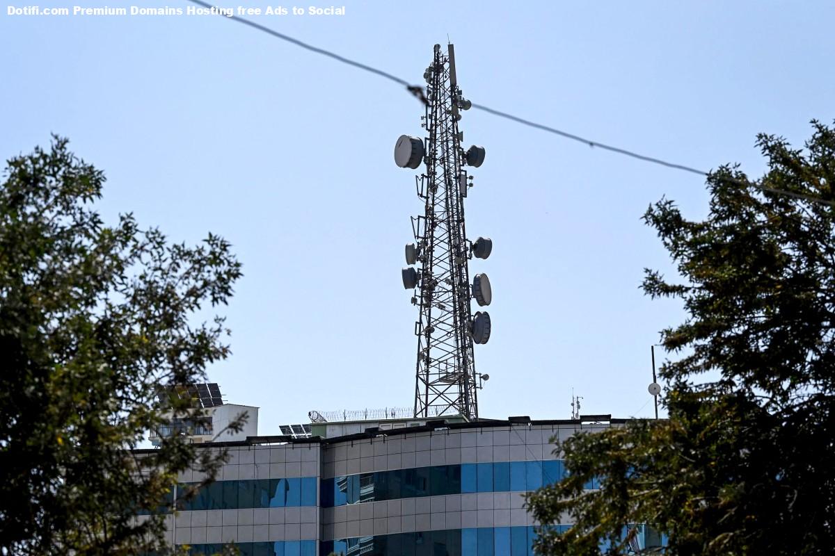 A general view shows a telecommunications antenna amid a nationwide telecom outage in Kabul on September 30, 2025. (Photo by Wakil KOHSAR / AFP)