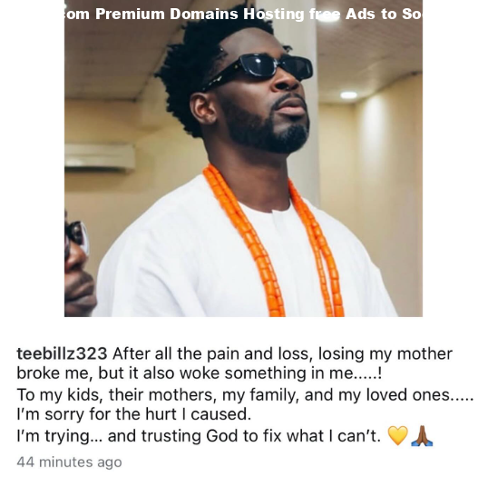 Music executive, Tunji Balogun aka Teebillz, has taken to social media to share on what the death of his mum did to him. Teebillz lost his mum in June last year and has been grieving her loss since. In a post shared on IG this evening, the dad of four said the de@th of his mum broke him but also woke up something in him.In his post, he apologized to his kids, their mothers, his family and loved ones for every hurt he must have caused them. After all the pain and loss, losing my mother broke me, but it also woke something in me…..!To my kids, their mothers, my family, and my loved ones….. Im sorry for the hurt I caused.Im trying and trusting God to fix what I cant.” The post To my kids, their mothers, my family, and my loved ones….. Im sorry for the hurt I caused”- Teebillz writes as he reflects on what the loss of his mum did to him appeared first on Time.com.ng.