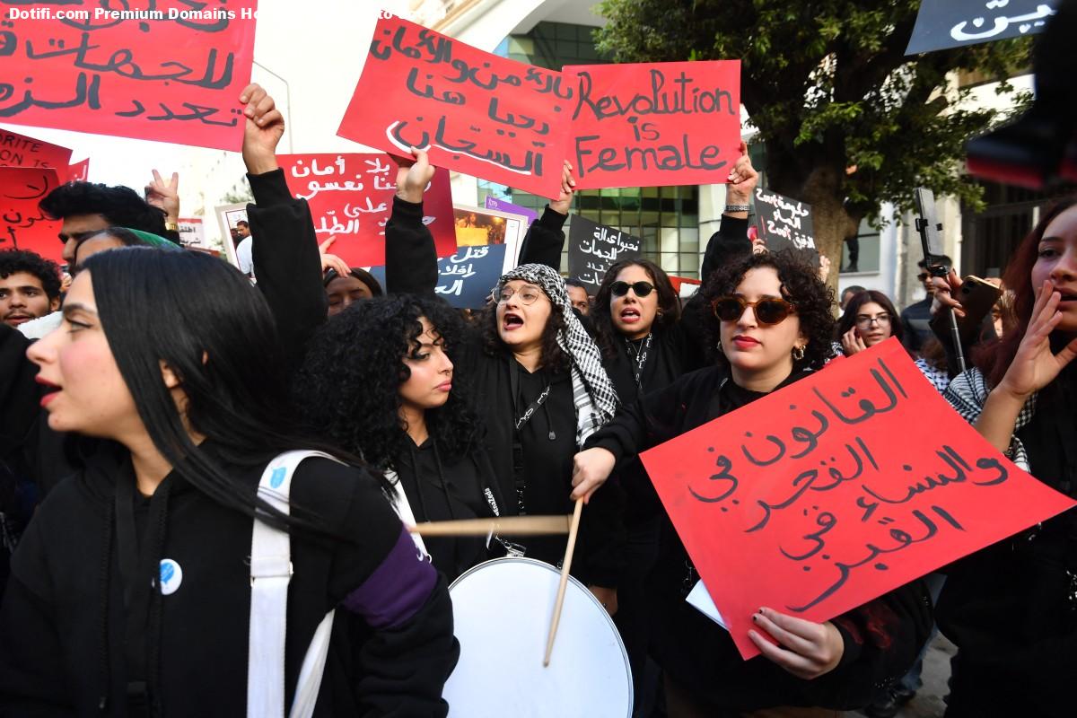 The protest, called by Tunisia’s leading women rights groups the Association of Democratic Women (ATFD) and Aswat Nissa, denounced what many see as a growing clampdown on dissent and rights defenders in Tunisia.