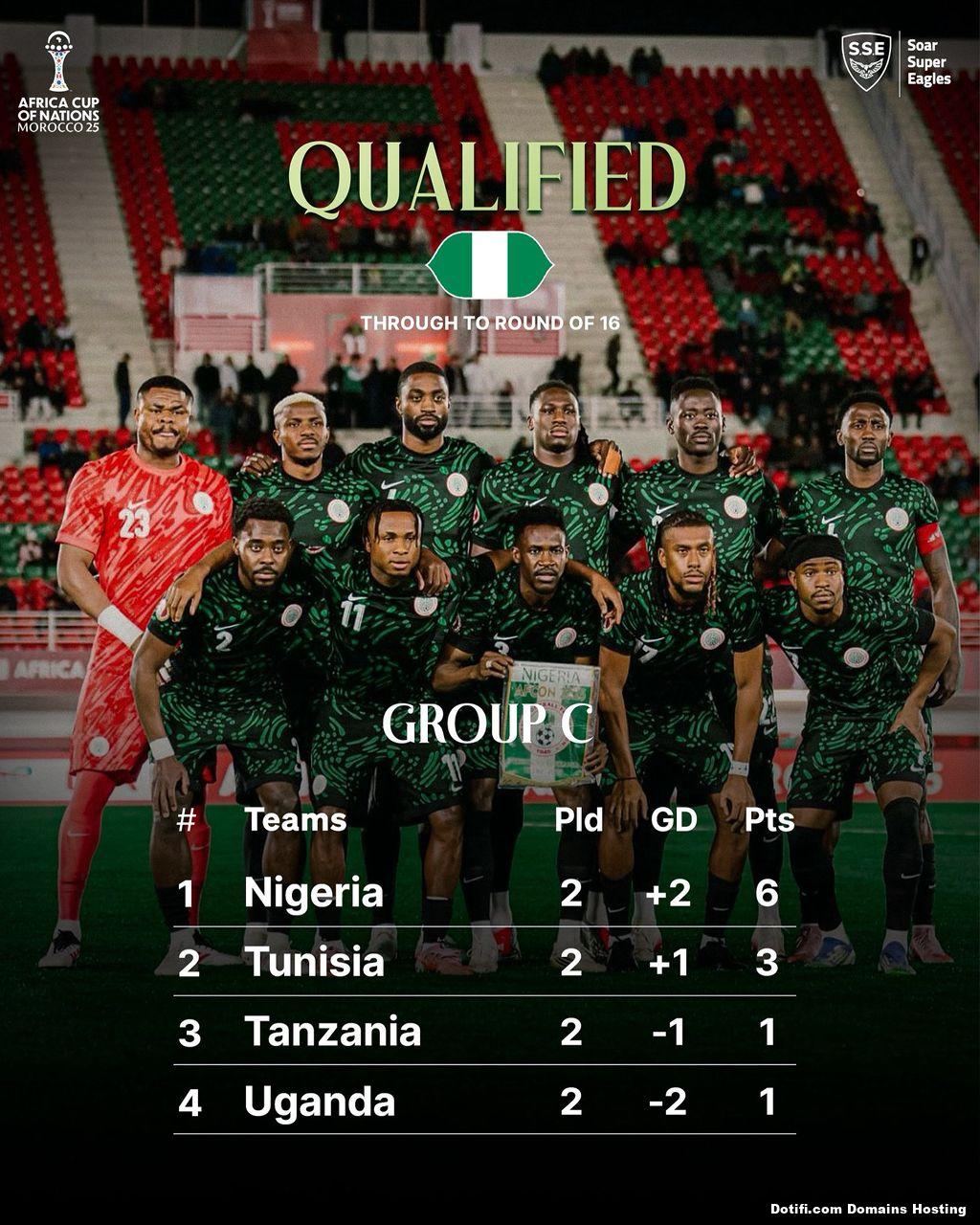 The Super Eagles of Nigeria have qualified for the last 16 of the ongoing 2025 Africa Cup of Nations in Morocco. The Nigerian stars defeated Tunisia 3-2 on Saturday night at Fez Stadium with goals from Victor Osimhen, Wilfried Ndidi, and Ademola Lookman, ensuring the teams qualification from their group. Victor Osimhen opened the scoring in the 44th minute through a cross from Ademola Lookman just before halftime. In the 50th minute, the team captain, Widfred Ndidi doubled the lead in the 50th minute, again assisted by Lookman. Lookman added a third goal in the 70th minute, following an assist from Osimhen. Meanwhile, Tunisia pulled one back through Montassar Talbi, before a late penalty was converted by Ali Al-Abdi. The outcome means Nigeria has six points from two matches, while Tunisia remains second with three points.The post Super Eagles of Nigeria beat Tunisia 3-2 to qualify for AFCON Round of 16 appeared first on Time.com.ng.