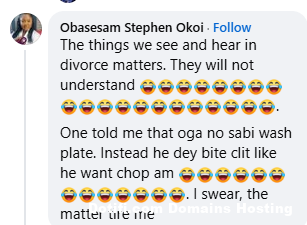 A Nigerian lawyer, Obasesam Stephen Okoi, has revealed that a client told her during a divorce case that her husband does not know how to go down on her.   She disclosed this while reacting to a story shared by a colleague, Firsts Baba Isa, who narrated how a man tried to take off his clothes and show him his p3nis after his wife compared it to a woman’s little finger during a divorce case.  The things we see and hear in divorce matters. They will not understand. One told me that oga no sabi wash plate. Instead he dey bite clit like he want chop am. I swear, the matter tire me, she wrote.      The post Nigerian lawyer shares her experience during a divorce case appeared first on Time.com.ng.