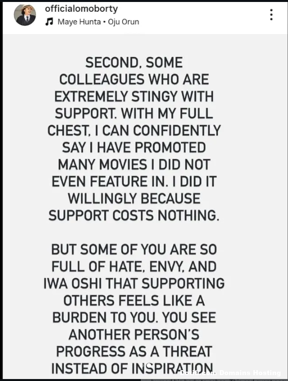 Nollywood actress Omoborty has publicly addressed what she described as unhealthy attitudes within the film industry, calling out colleagues who fail to support producers and fellow actors when it matters most. In a post shared online, the actress criticised actors who feature in movies but become unavailable or uncooperative when it is time to promote the projects. She described such behaviour as wicked and unsupportive, stressing that no actor is above the work or the people who fund it. Omoborty also spoke about colleagues she described as stingy with support, saying she has personally promoted many films she did not even appear in, simply because supporting others costs nothing. According to her, envy and bad character have made some people see another persons progress as a threat rather than inspiration, adding that this mindset continues to hurt collaboration and growth within the industry. View post below,,, The post Actress Omoborty calls out colleagues over lack of support and poor movie promotion culture appeared first on Time.com.ng.