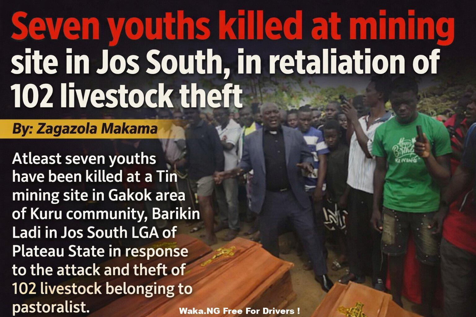 Atleast seven youths have been killed at a Tin mining site in Gakok area of Kuru community, Barikin Ladi in Jos South LGA of Plateau State in response to the attack and theft of 102 livestock belonging to pastoralist.