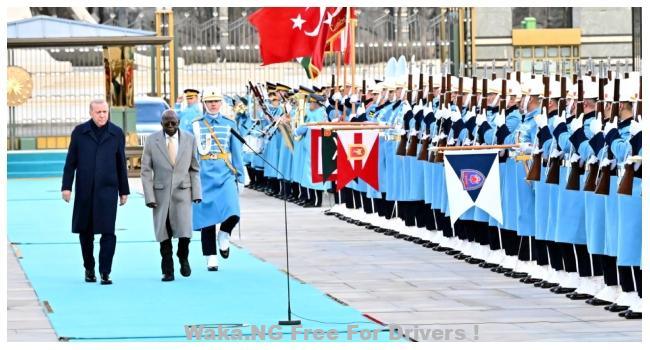 Immediately after he alighted from the car, the military band played Nigeria’s national anthem, which was followed by the Turkish national anthem.