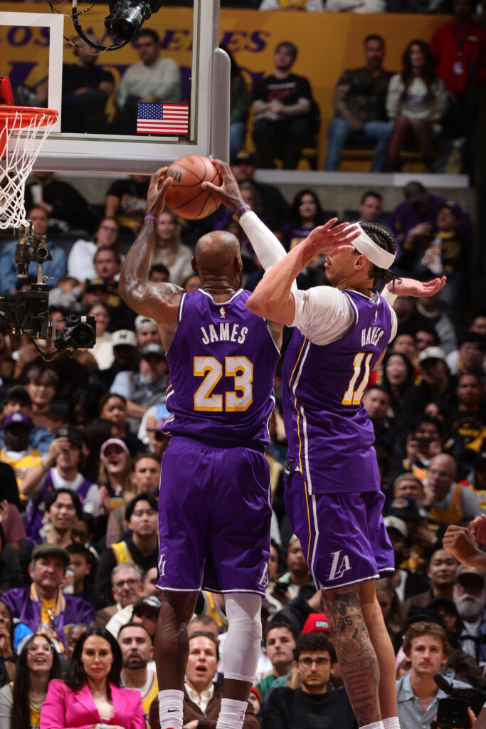 LOS ANGELES, CA – FEBRUARY 12: LeBron James #23 of the Los Angeles Lakers grabs the rebound to record a triple double during the game against the Dallas Mavericks on February 12, 2026 at Crypto.Com Arena in Los Angeles, California. NOTE TO USER: User expressly acknowledges and agrees that, by downloading and/or using this Photograph, user is consenting to the terms and conditions of the Getty Images License Agreement. Mandatory Copyright Notice: Copyright 2026 NBAE Nathaniel S. Butler/NBAE via Getty Images/AFP (Photo by Nathaniel S. Butler / NBAE / Getty Images / Getty Images via AFP)